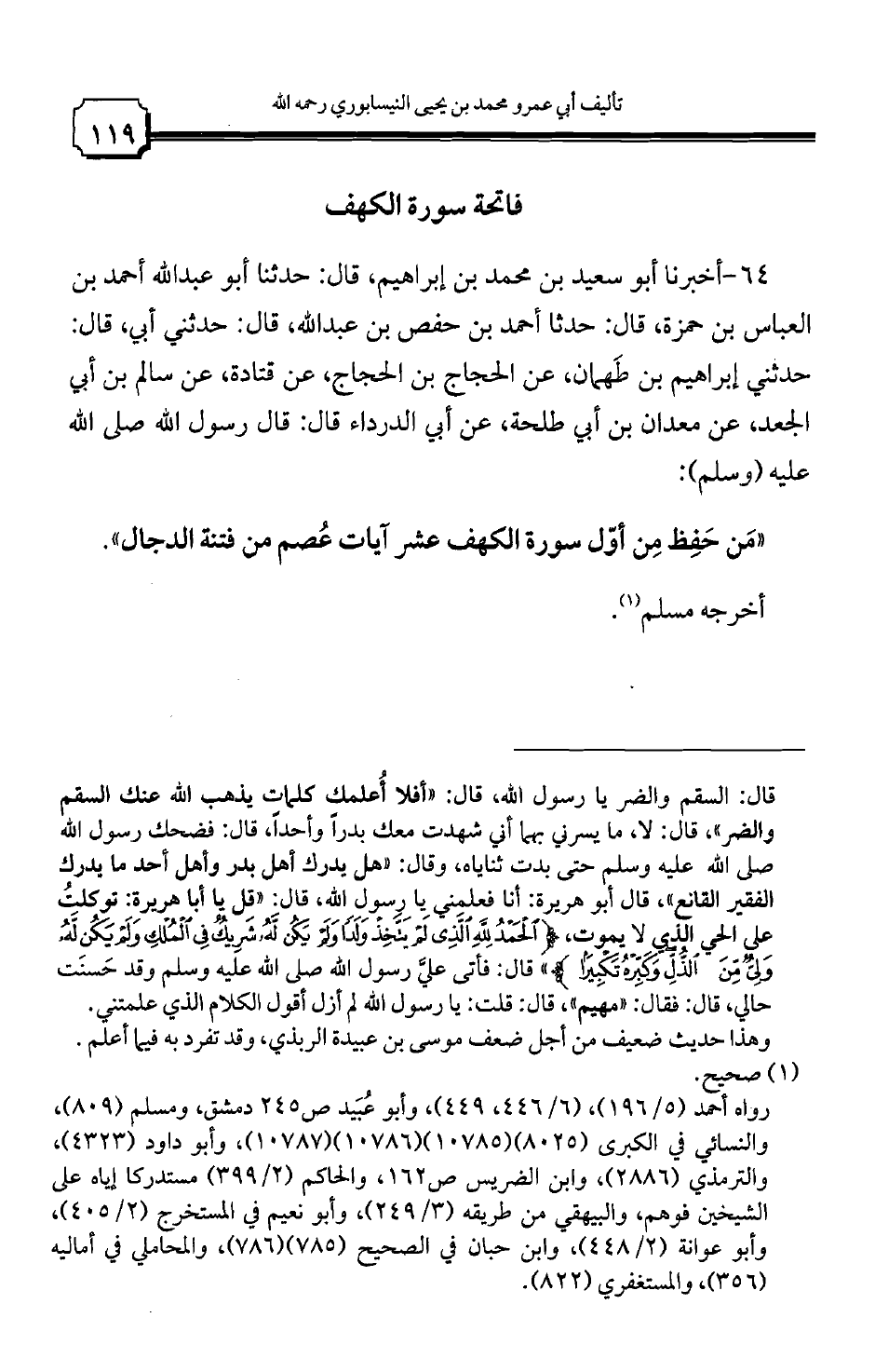 "من حفظ من أول سورة الكهف عشر آيات عصم من فتنة الدجال".
