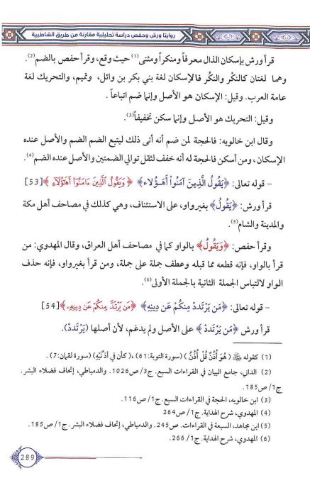 (¬2) - الداني، جامع البيان في القراءات السبع. ج3/ص1026. والدمياطي، إتحاف فضلاء البشر. ج1/ص185.