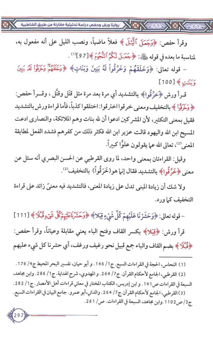 (¬1) - النحاس، الحجة في القراءات السبع. ج1/ 146. وأبو حيان، تفسير البحر المحيط ج4/ 176.