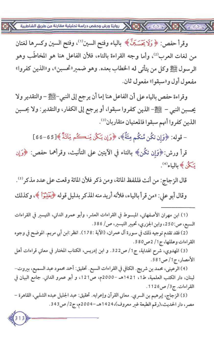 (¬4) - ... الرعينى، محمد بن شريج. الكافي في القراءات السبع. تحقيق: أحمد محمود عبد السميع، بيروت- لبنان، دار الكتب العلمية، ط: 1، 1421هـ -2000م، ص121، وأبو عمرو الداني. جامع البيان في القراءات. ج3/ص1126.