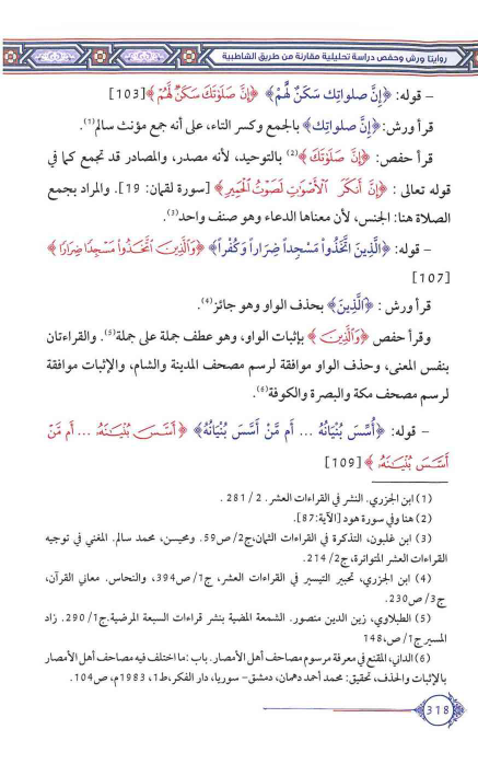(¬6) - الداني، المقنع في معرفة مرسوم مصاحف أهل الأمصار. باب: ما اختلف فيه مصاحف أهل الأمصار بالإثبات والحذف، تحقيق: محمد أحمد دهمان، دمشق- سوريا، دار الفكر، ط:1، 1983م، ص104.