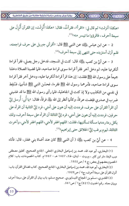 (¬3) - القشيري، مسلم بن الحجاج النيسابوري. صحيح مسلم، باب بيان أن القرآن على سبعة أحرف وبيان معناه. رقم الحديث: (821) ج1 /ص561.