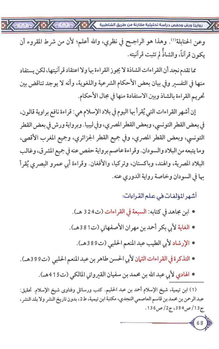 كتاب القراءات روايتا ورش وحفص دراسة تحليلية مقارنة