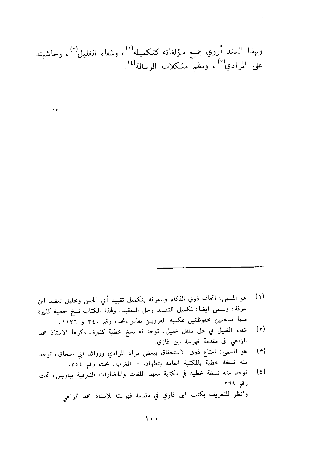 وَبِهَذَا السَّنَد أروي جَمِيع مؤلفاته كتكميله وشفاء الغليل وحاشيته على الْمرَادِي ونظم مشكلات الرسَالَة