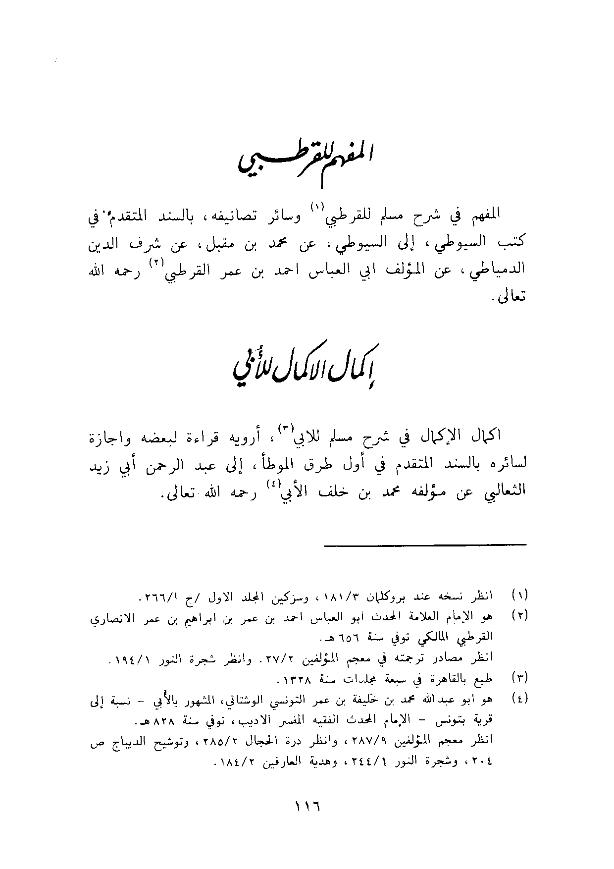 اكمال الْإِكْمَال فِي شرح مُسلم للابي أرويه قِرَاءَة لبعضه واجازة لسائره بالسند الْمُتَقَدّم فِي أول طرق الْمُوَطَّأ الى عبد الرَّحْمَن أبي زيد الثعالبي عَن مُؤَلفه مُحَمَّد بن خلف الأبي رَحمَه الله تَعَالَى