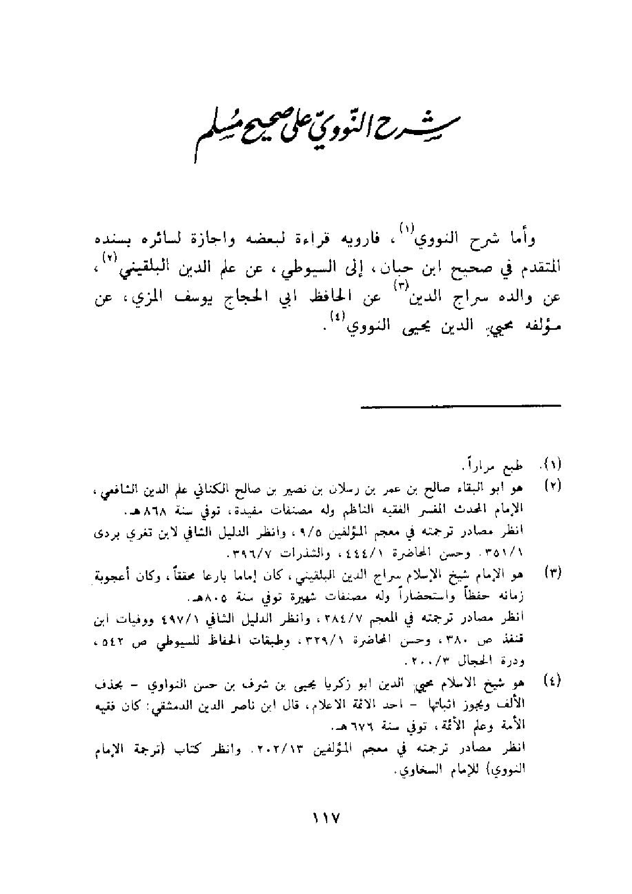 وَأما شرح النَّوَوِيّ فارويه قِرَاءَة لبعضه واجازة لسائره بِسَنَدِهِ الْمُتَقَدّم فِي صَحِيح ابْن حبَان الى السُّيُوطِيّ عَن علم الدّين البُلْقِينِيّ عَن وَالِده سراج الدّين عَن الْحَافِظ ابي الْحجَّاج يُوسُف الْمزي عَن مُؤَلفه محيي الدّين يحيى النَّوَوِيّ