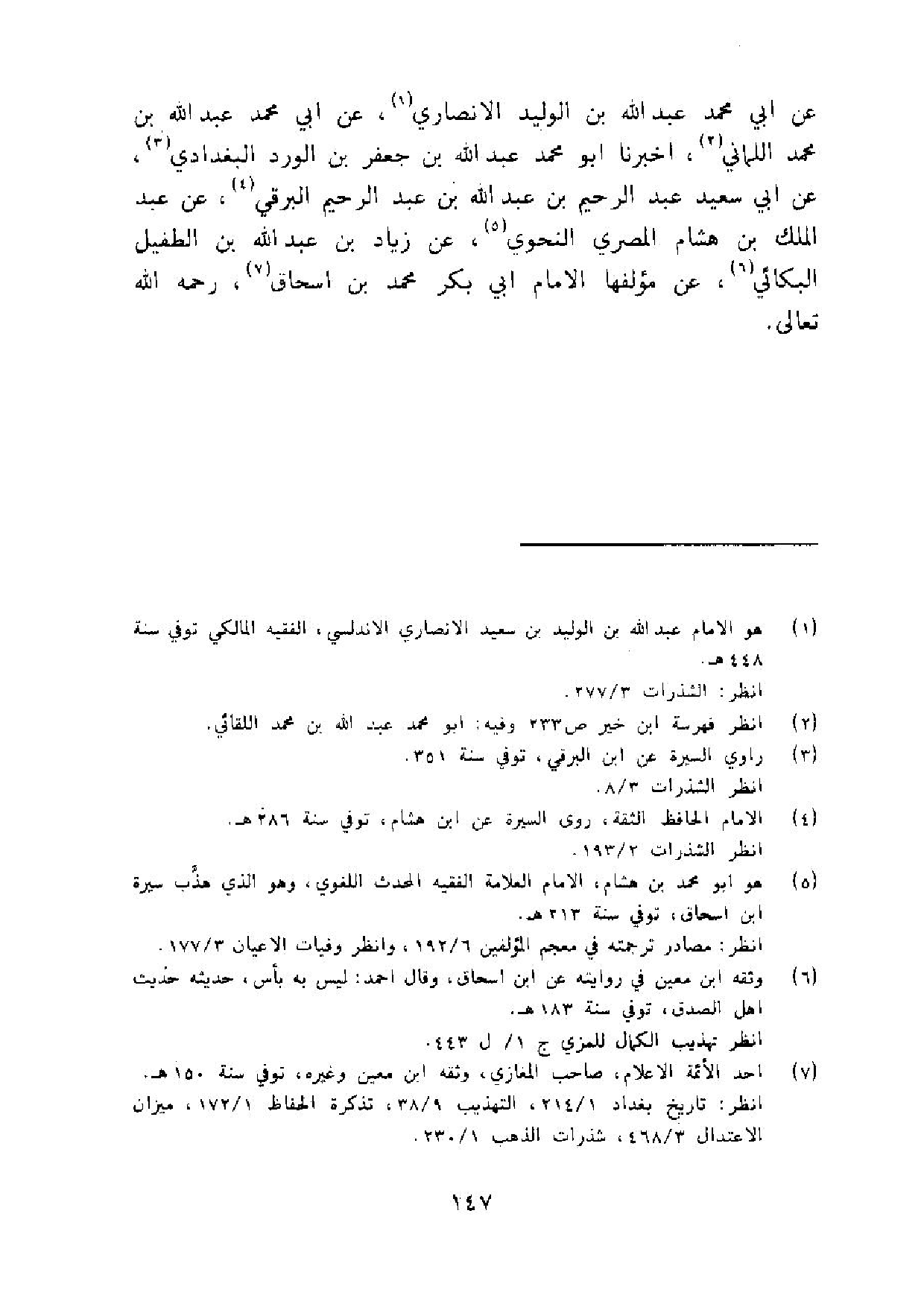 عَن ابي مُحَمَّد عبد الله بن الْوَلِيد الانصاري عَن ابي مُحَمَّد عبد الله بن مُحَمَّد اللماني اُخْبُرْنَا ابو مُحَمَّد عبد الله بن جَعْفَر بن الْورْد الْبَغْدَادِيّ عَن ابي سعيد عبد الرَّحِيم بن عبد الله بن عبد الرَّحِيم البرقي عَن عبد الْملك بن هِشَام الْمصْرِيّ النَّحْوِيّ عَن زِيَاد بن عبد الله بن الطُّفَيْل البكائي عَن مؤلفها الامام ابي بكر مُحَمَّد بن اسحاق رَحمَه الله تَعَالَى