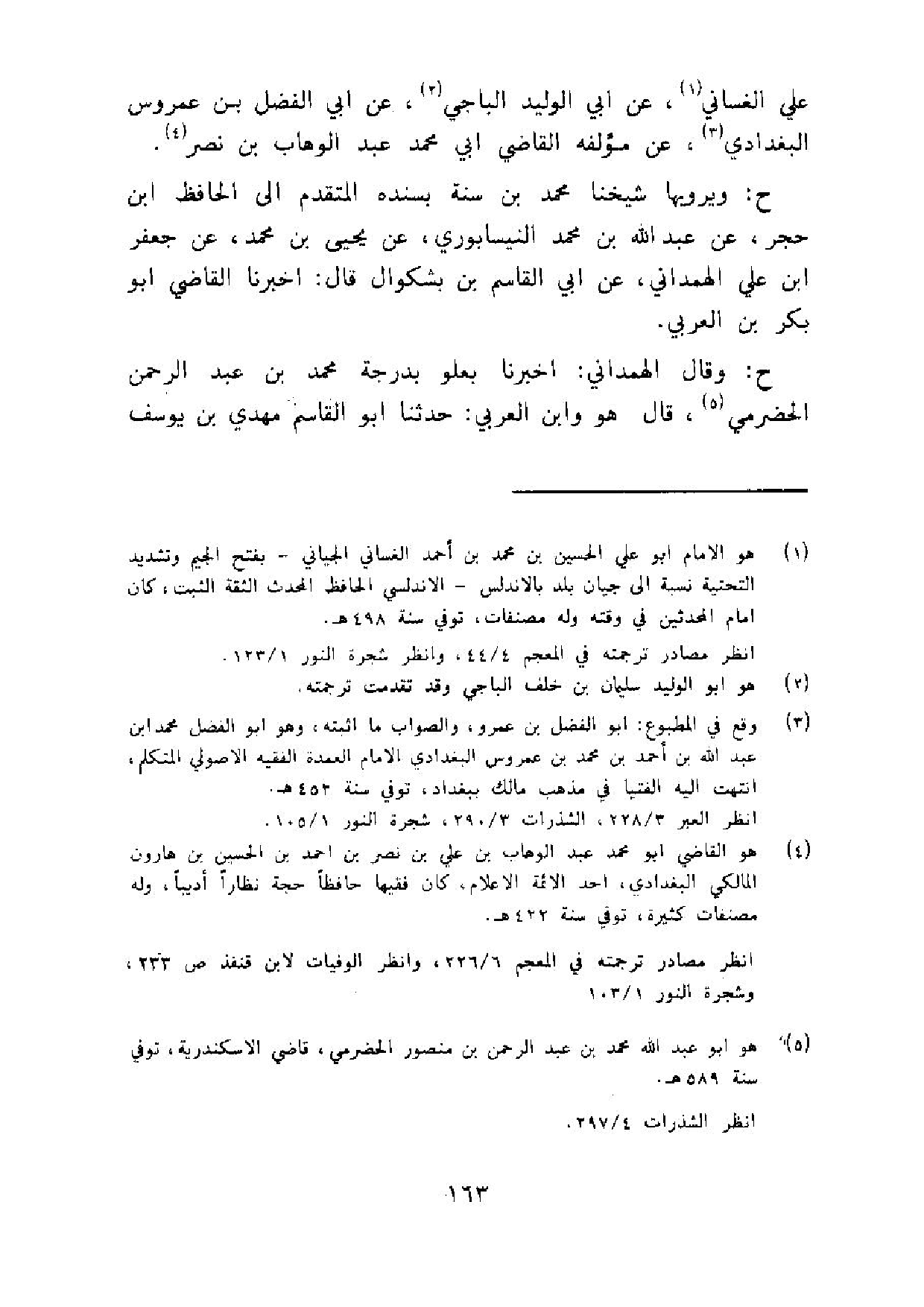 عَليّ الغساني عَن ابي الْوَلِيد الْبَاجِيّ عَن ابي الْفضل بن عمروس الْبَغْدَادِيّ عَن مُؤَلفه القَاضِي ابي مُحَمَّد عبد الْوَهَّاب بن نصر