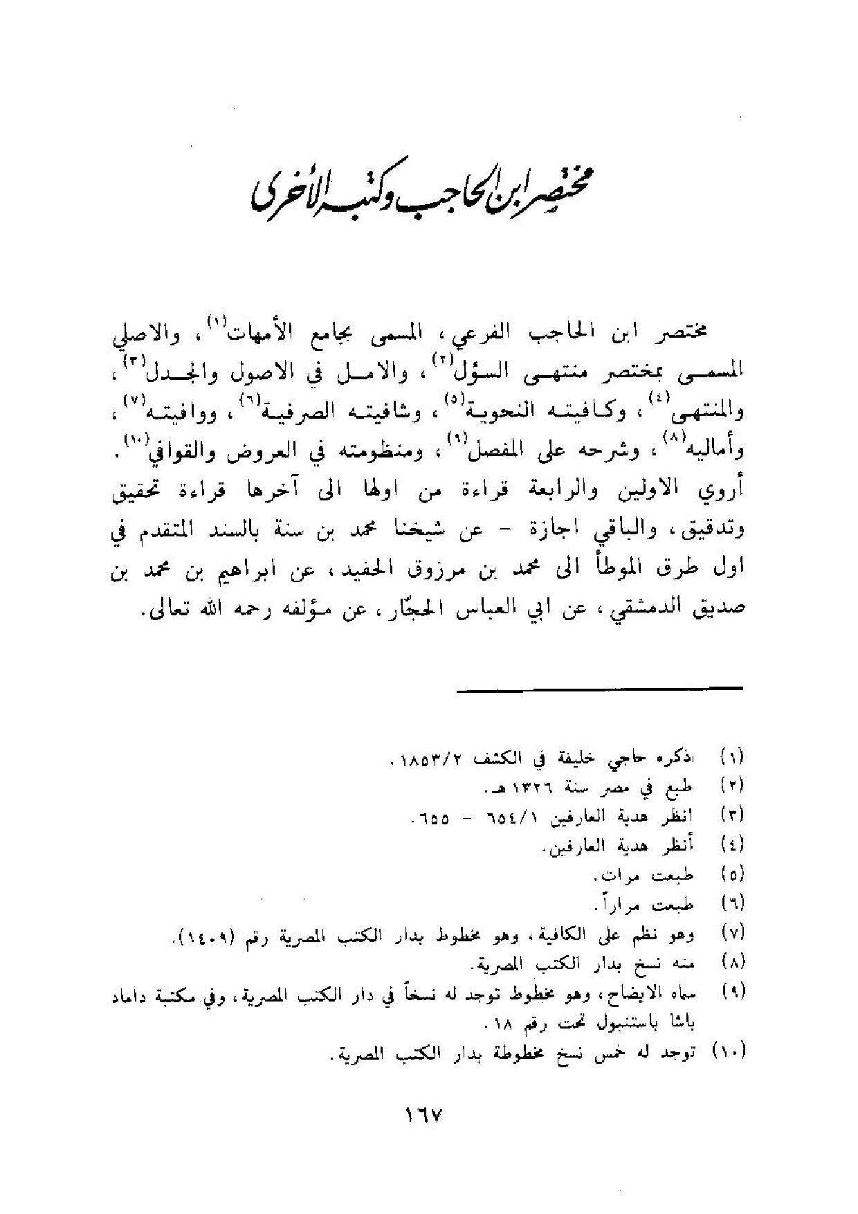 مُخْتَصر ابْن الحادجب وَكتبه الْأُخْرَى