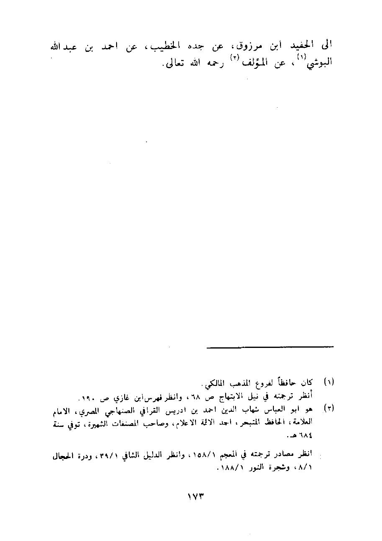 الى الْحَفِيد ابْن مَرْزُوق عَن جده الْخَطِيب عَن احْمَد بن عبد الله البوشي عَن الْمُؤلف رَحْمَة الله تَعَالَى