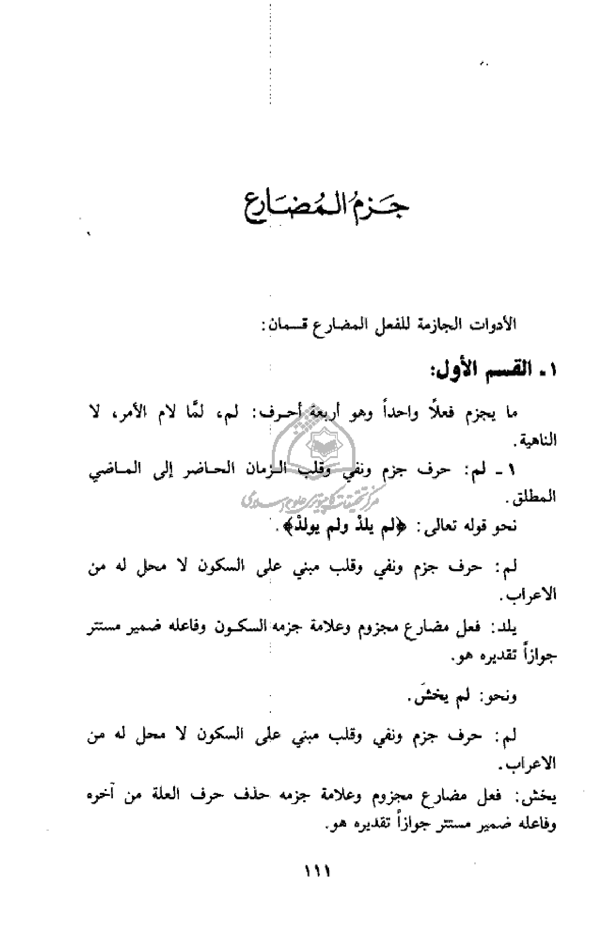 1 - لم: حرف جزم ونفي وقلب الزمان الحاضر إلى الماضي المطلق.