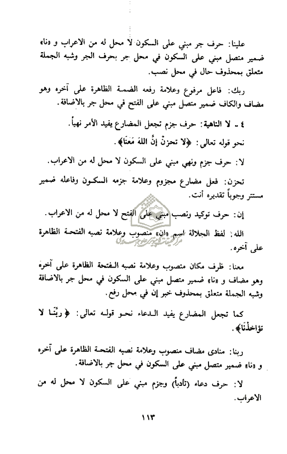 4 - لا الناهية: حرف جزم تجعل المضارع يفيد الأمر نهيا.