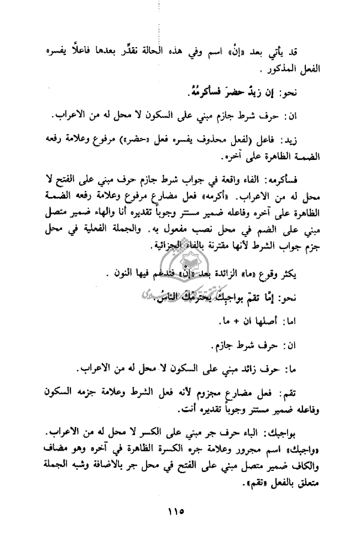 فسأكرمه: الفاء واقعة في جواب شرط جازم حرف مبني على الفتح لا محل له من الاعراب. «أكرمه» فعل مضارع مرفوع وعلامة رفعه الضمة الظاهرة على آخره وفاعله ضمير مستتر وجوبا تقديره أنا والهاء ضمير متصل مبني على الضم في محل نصب مفعول به. والجملة الفعلية في محل جزم جواب الشرط لأنها مقترنة بالفاء الجزائية.