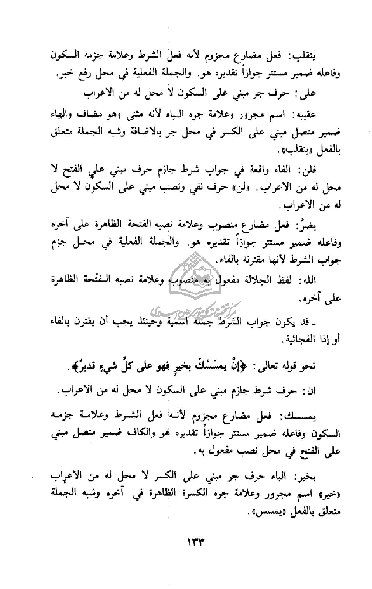 نحو قوله تعالى: إِنْ يَمْسَسْكَ بِخَيْرٍ فَهُوَ عَلى كُلِّ شَيْءٍ قَدِيرٌ.