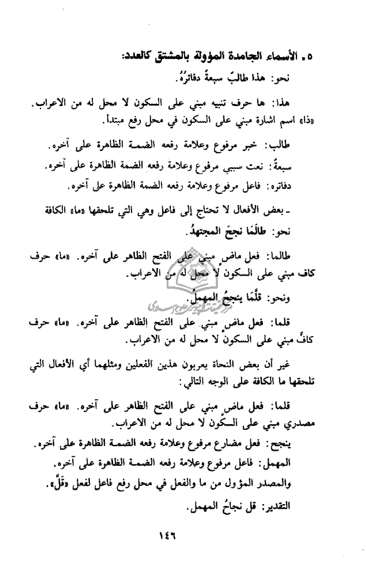 5 - الأسماء الجامدة المؤولة بالمشتق كالعدد: