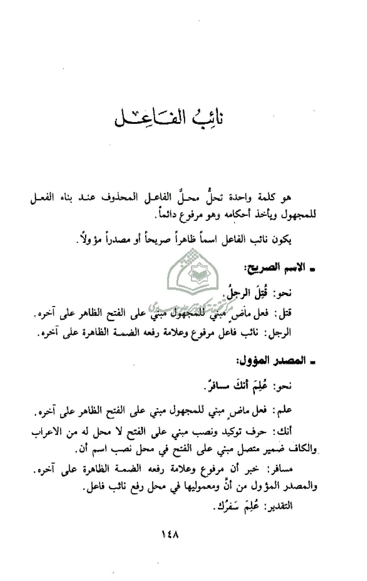 يكون نائب الفاعل اسما ظاهرا صريحا أو مصدرا مؤولا.