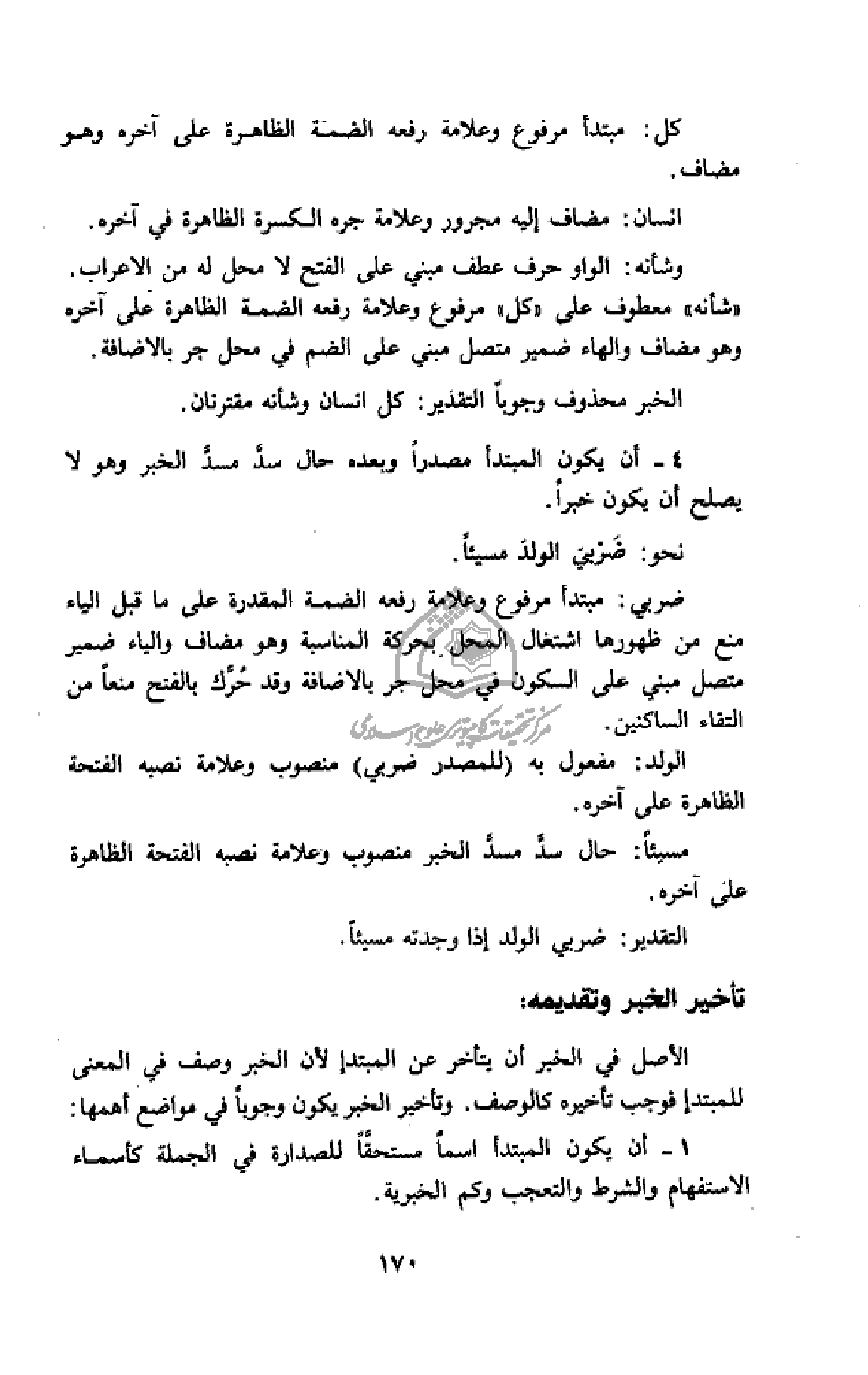 الأصل في الخبر أن يتأخر عن المبتدإ لأن الخبر وصف في المعنى للمبتدإ فوجب تأخيره كالوصف. وتأخير الخبر يكون وجوبا في مواضع أهمها: