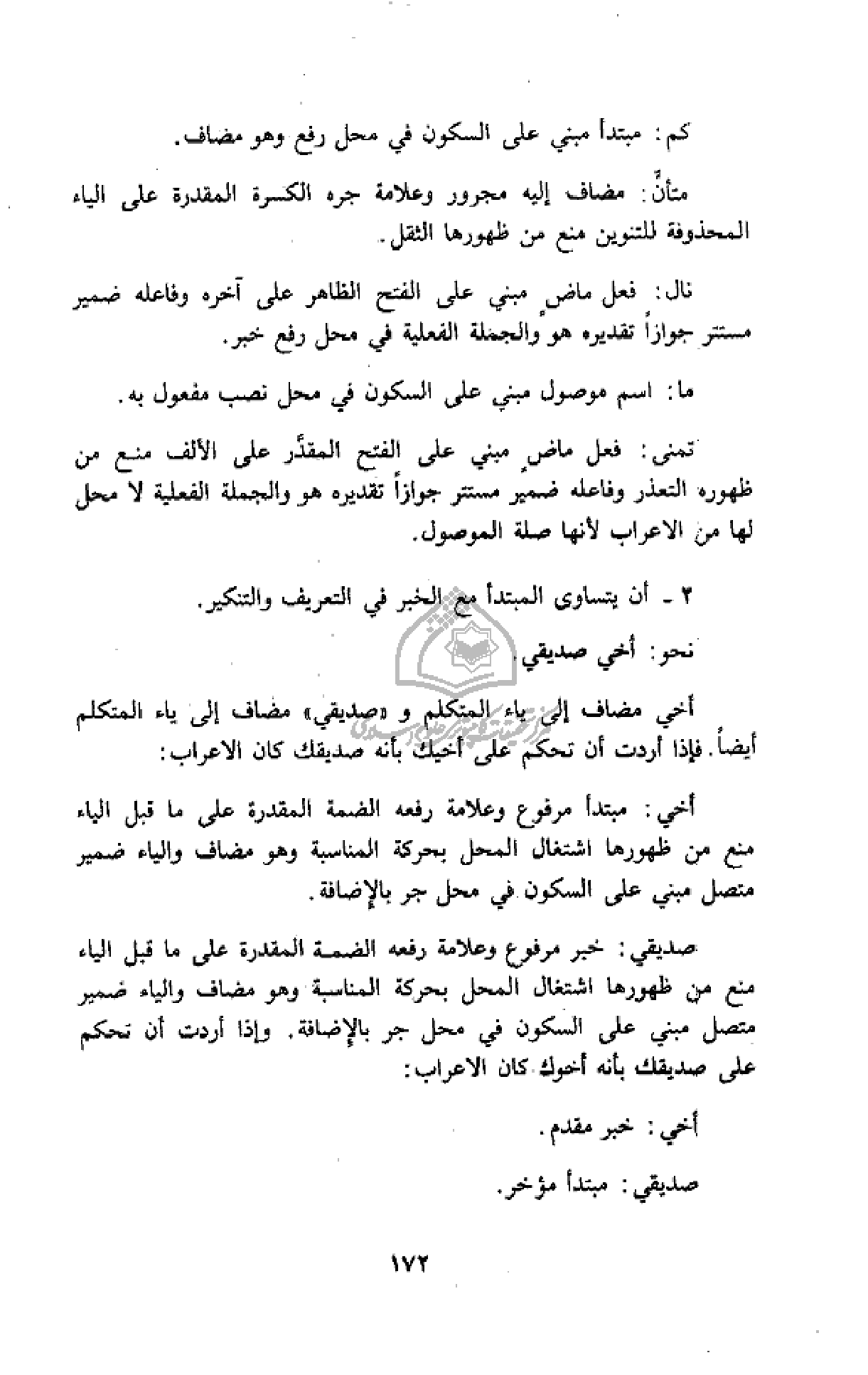 أخي مضاف إلى ياء المتكلم و «صديقي» مضاف إلى ياء المتكلم أيضا. فإذا أردت أن تحكم على أخيك بأنه صديقك كان الاعراب: