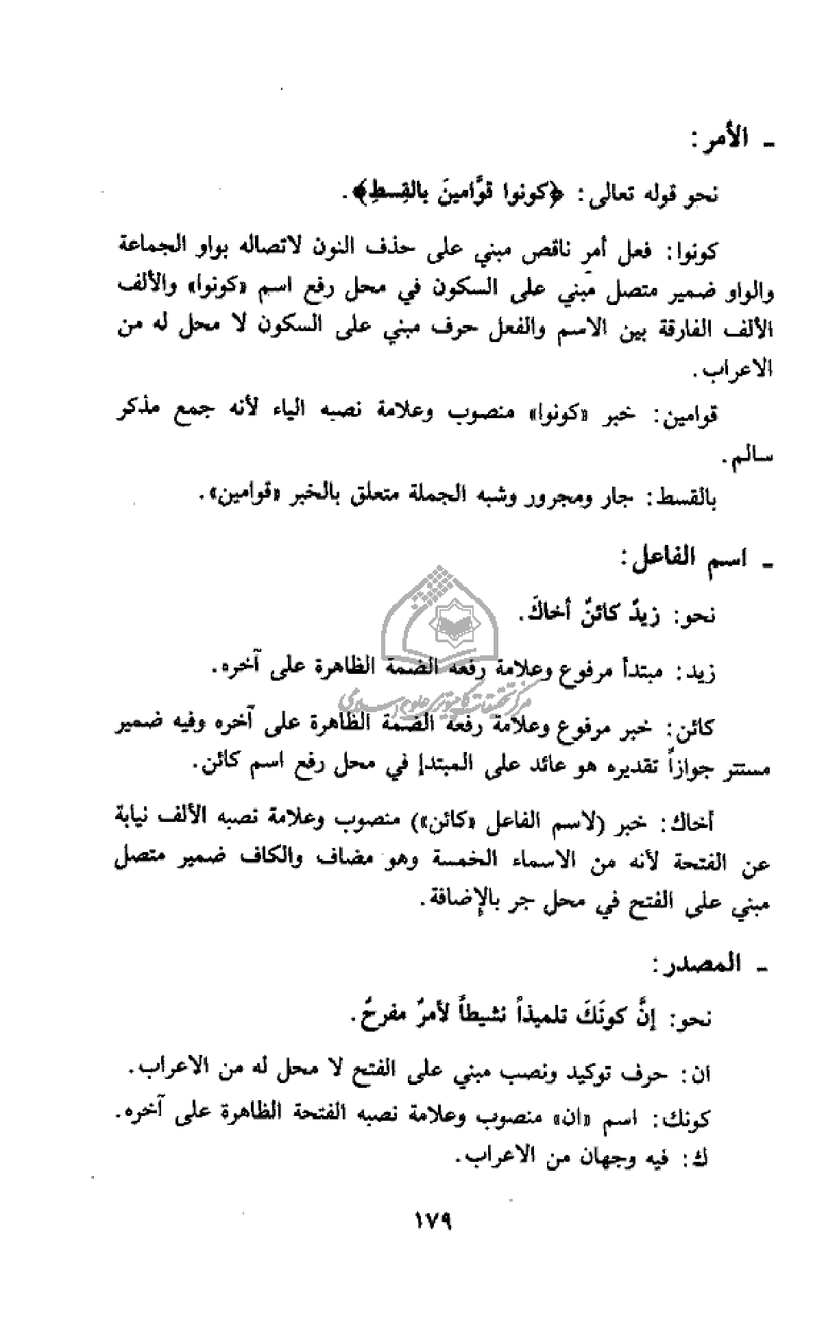 نحو قوله تعالى: كُونُوا قَوَّامِينَ بِالْقِسْطِ.