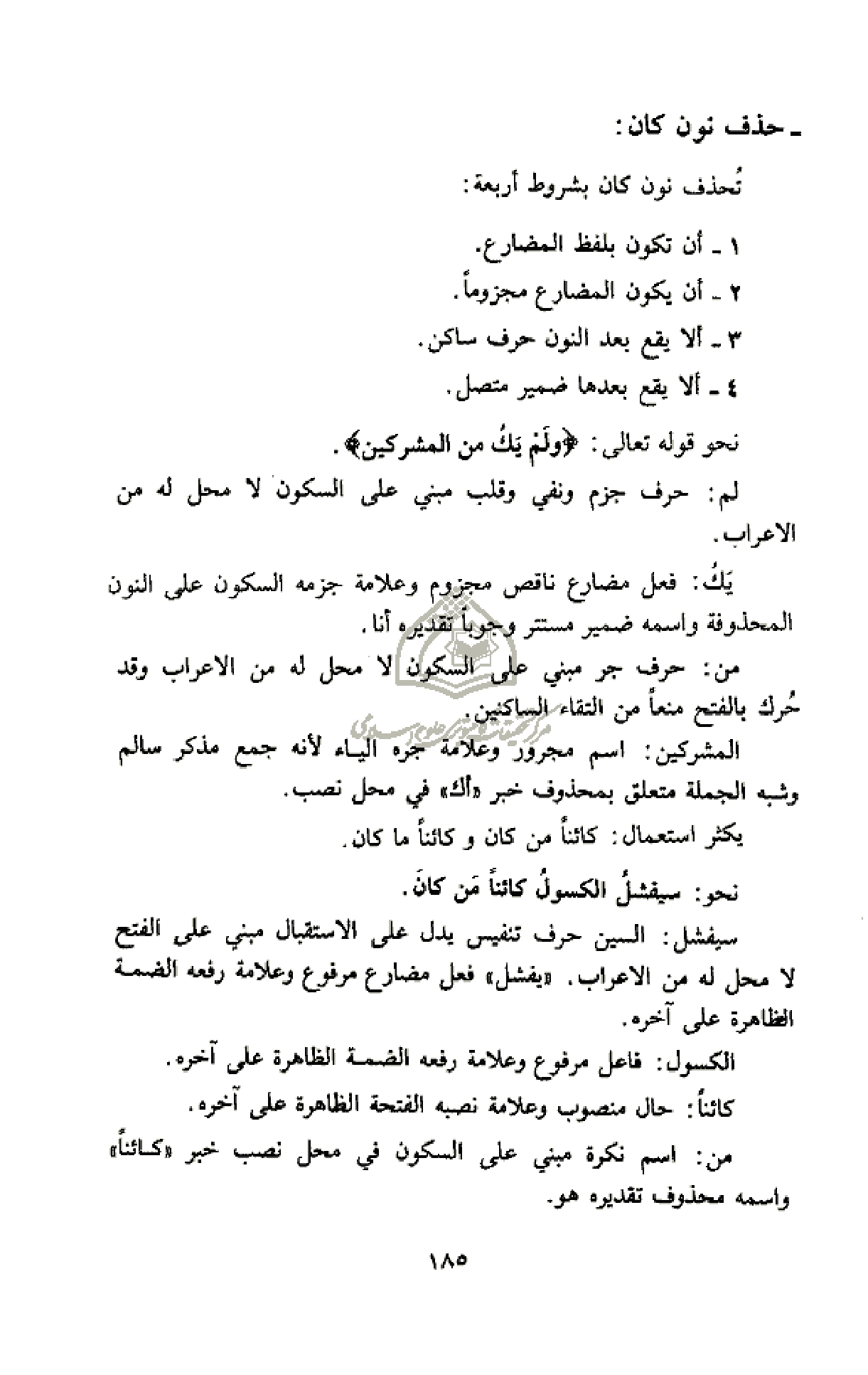 نحو قوله تعالى: وَلَمْ يَكُ مِنَ الْمُشْرِكِينَ.