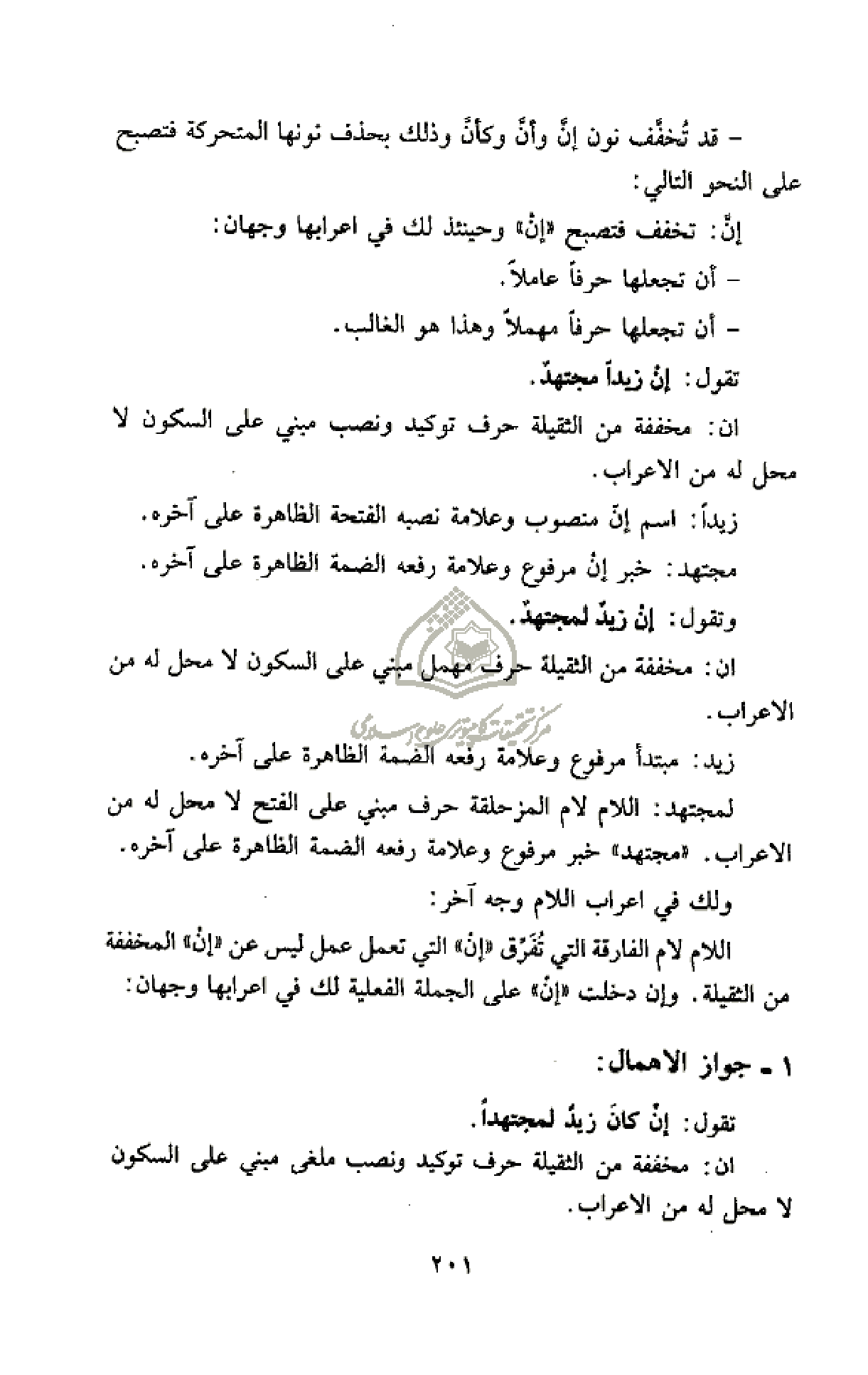 إنّ: تخفف فتصبح «إن» وحينئذ لك في اعرابها وجهان: