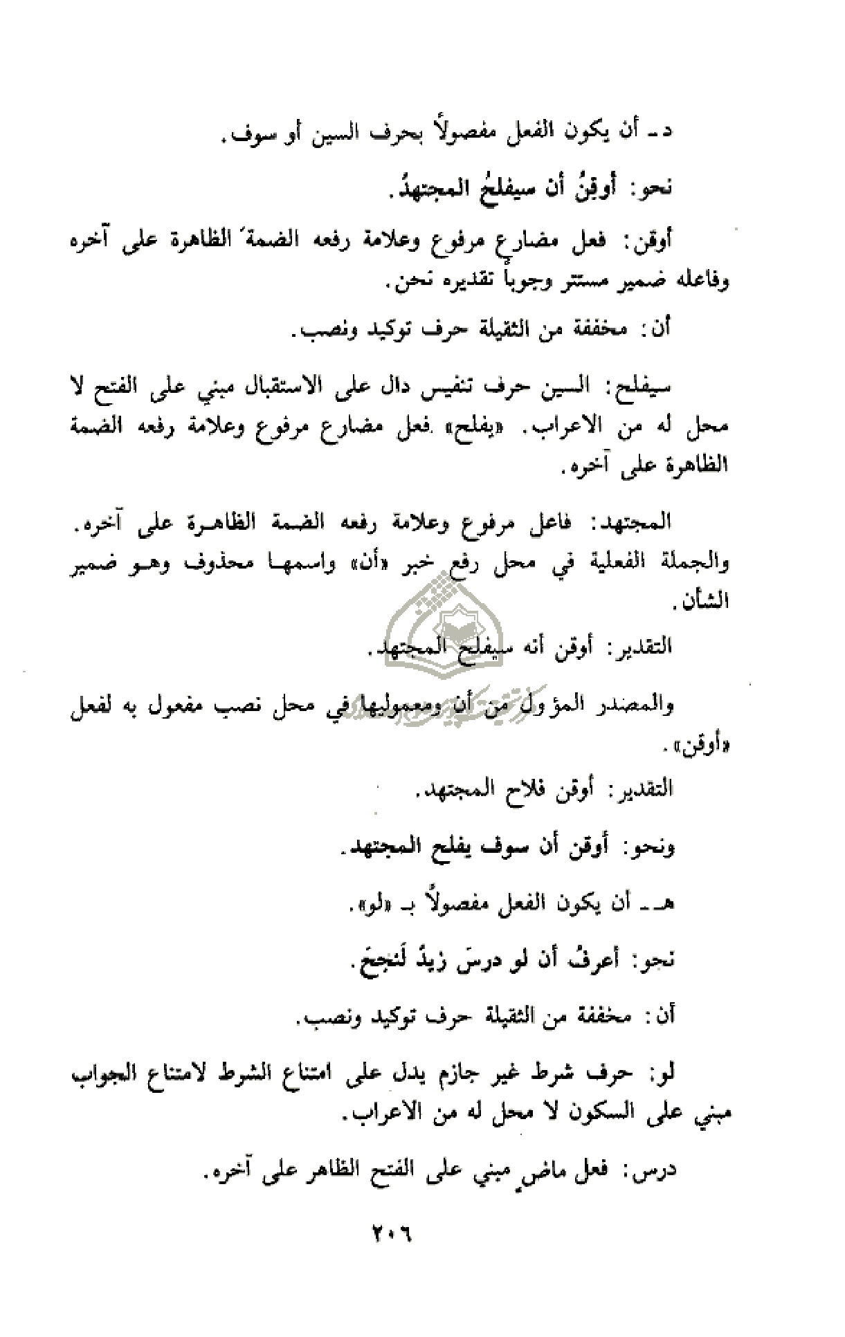 د- أن يكون الفعل مفصولا بحرف السين أو سوف.