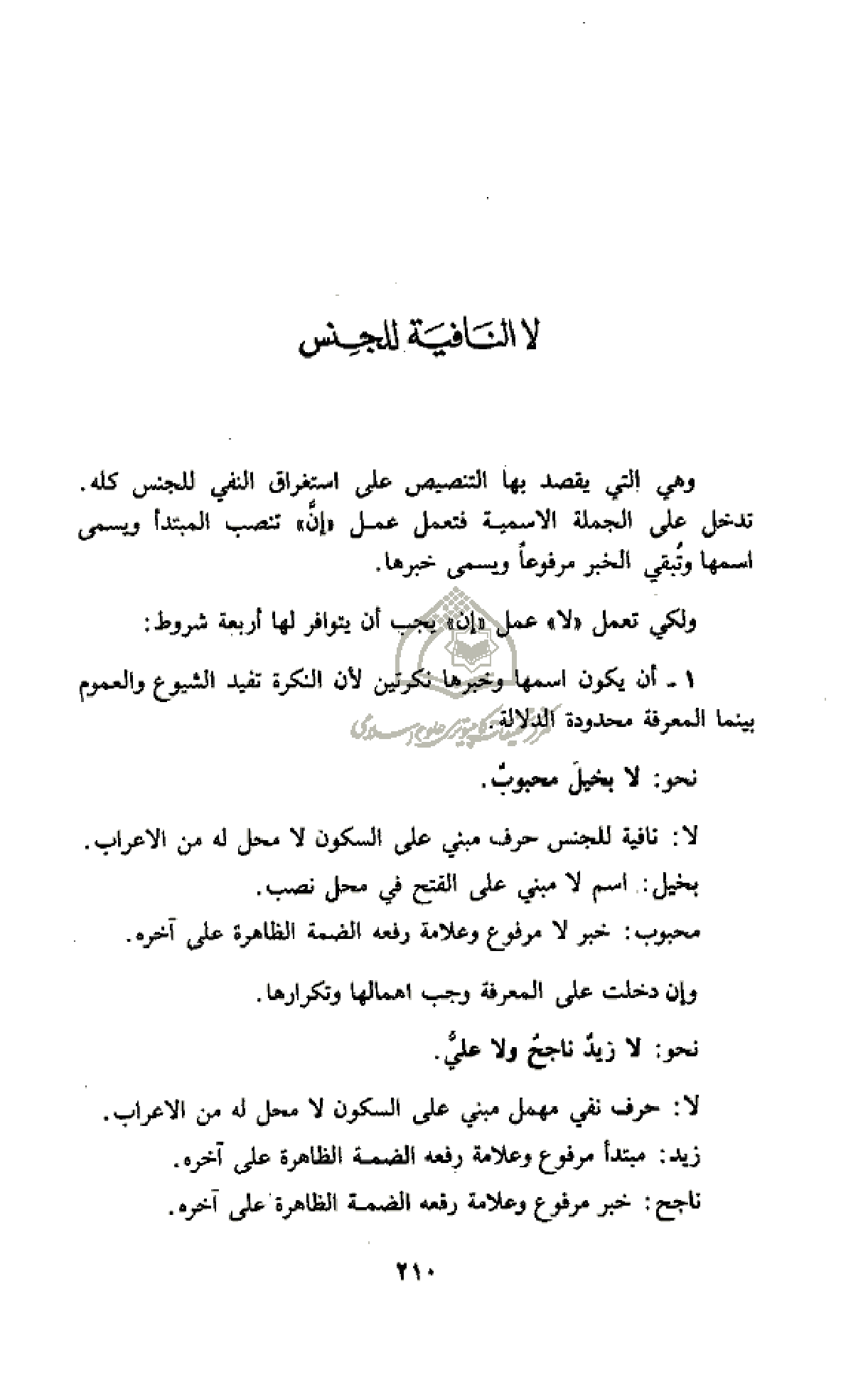 ولكي تعمل «لا» عمل «إن» يجب أن يتوافر لها أربعة شروط: