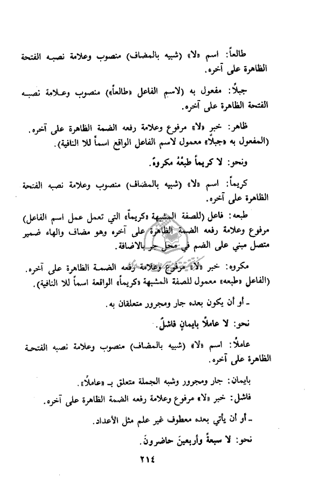 نحو: لا عاملا بايمان فاشل.