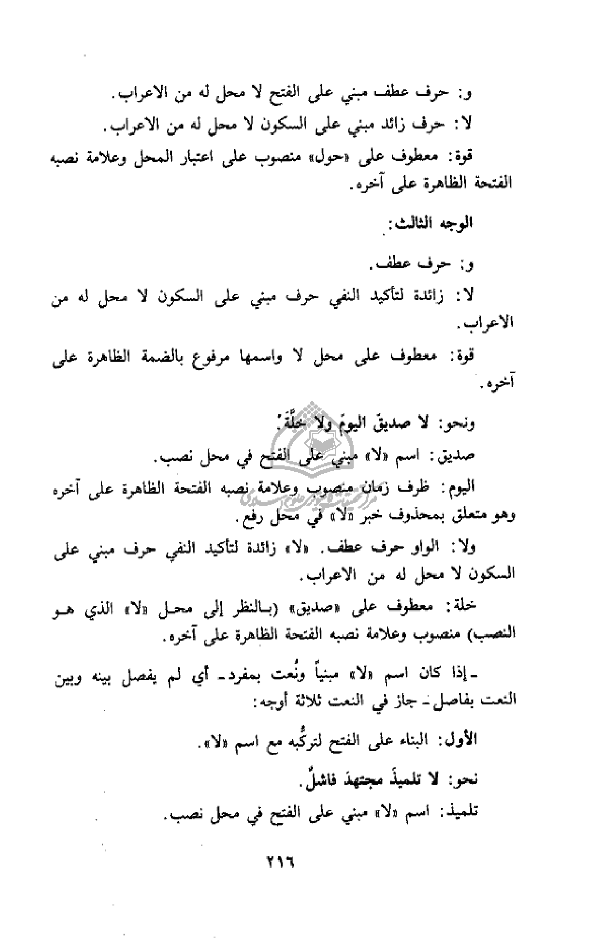 ولا: الواو حرف عطف. «لا» زائدة لتأكيد النفي حرف مبني على السكون لا محل له من الاعراب.