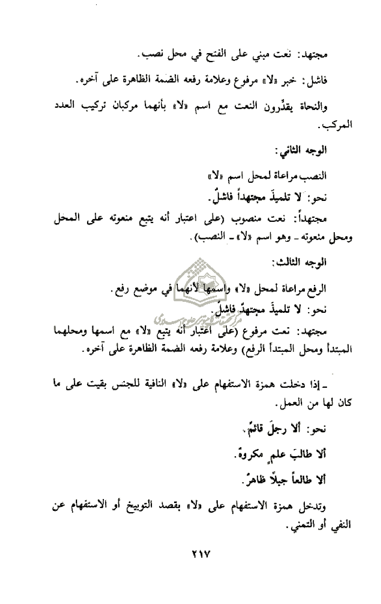 والنحاة يقدّرون النعت مع اسم «لا» بأنهما مركبان تركيب العدد المركب.