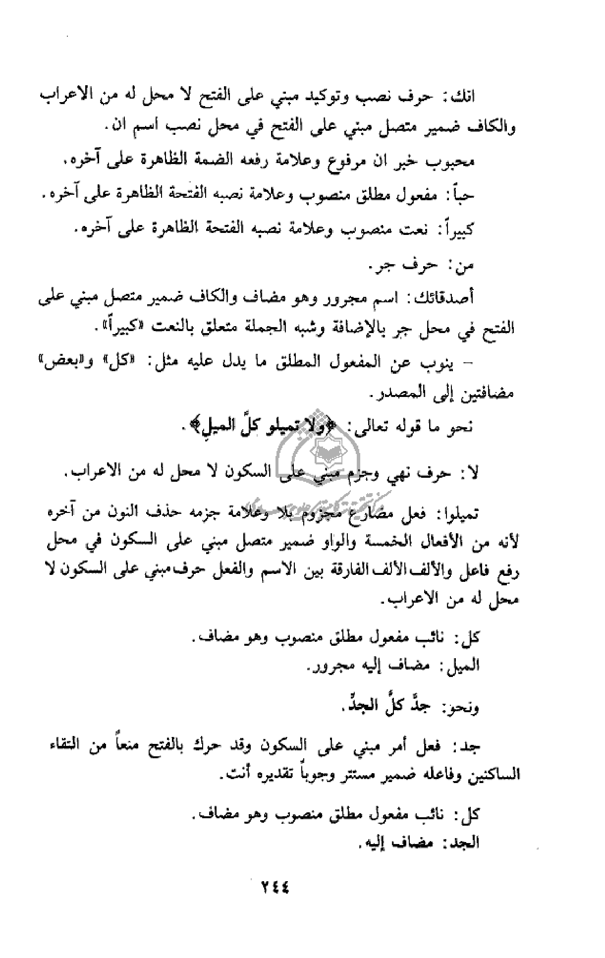 نحو ما قوله تعالى: فَلا تَمِيلُوا كُلَّ الْمَيْلِ.