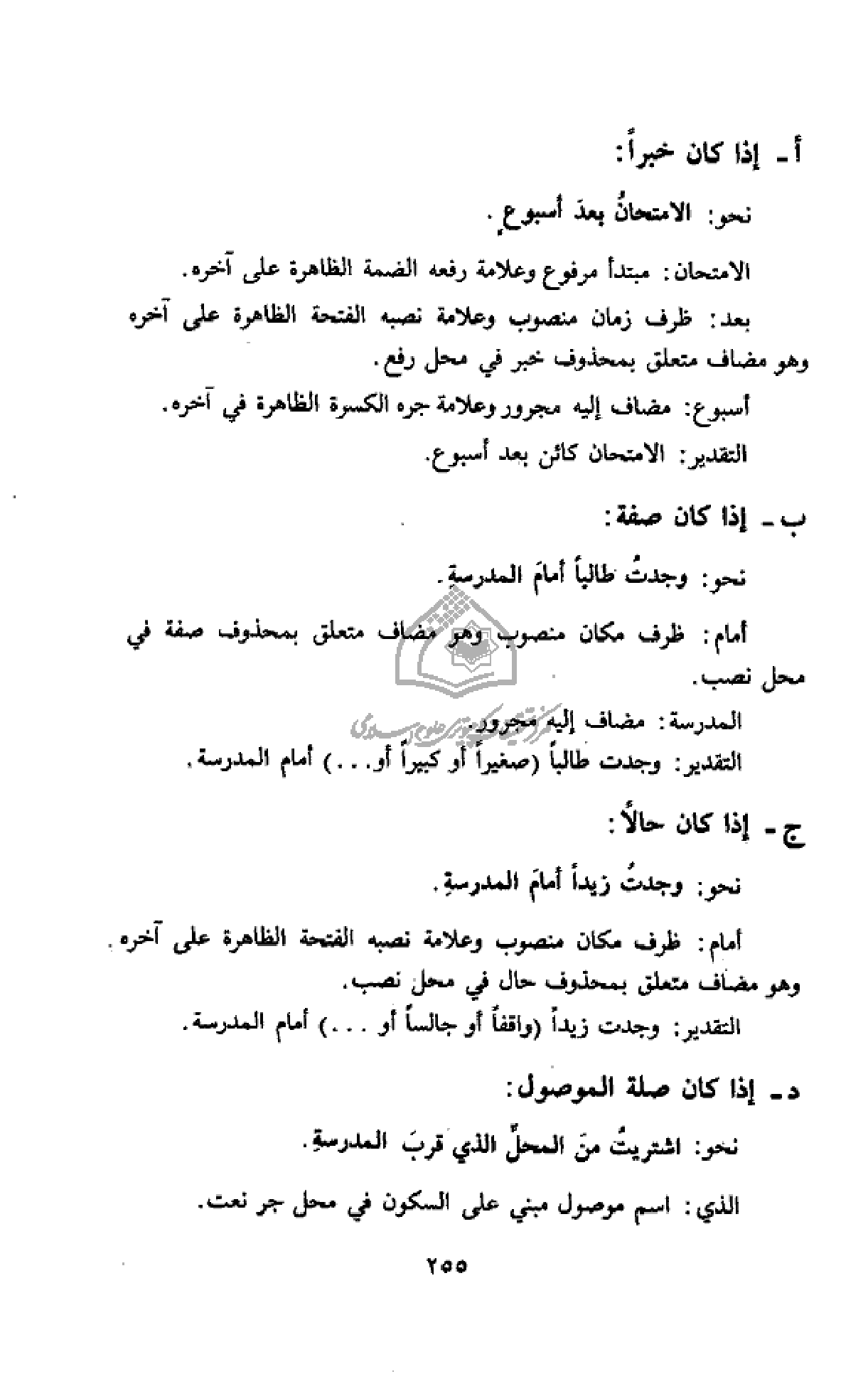 نحو: وجدت زيدا أمام المدرسة.