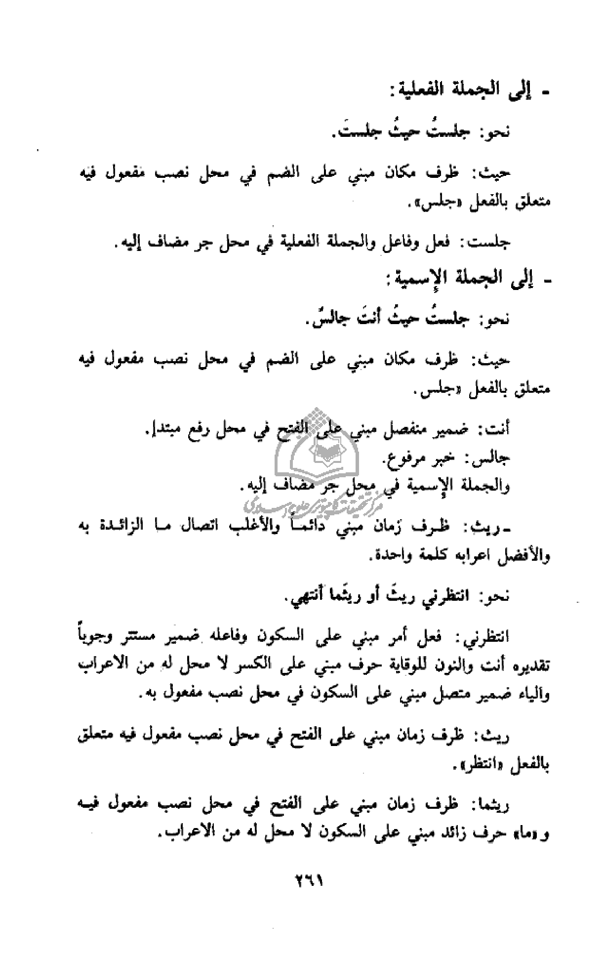 - ريث: ظرف زمان مبني دائما والأغلب اتصال ما الزائدة به والأفضل اعرابه كلمة واحدة.