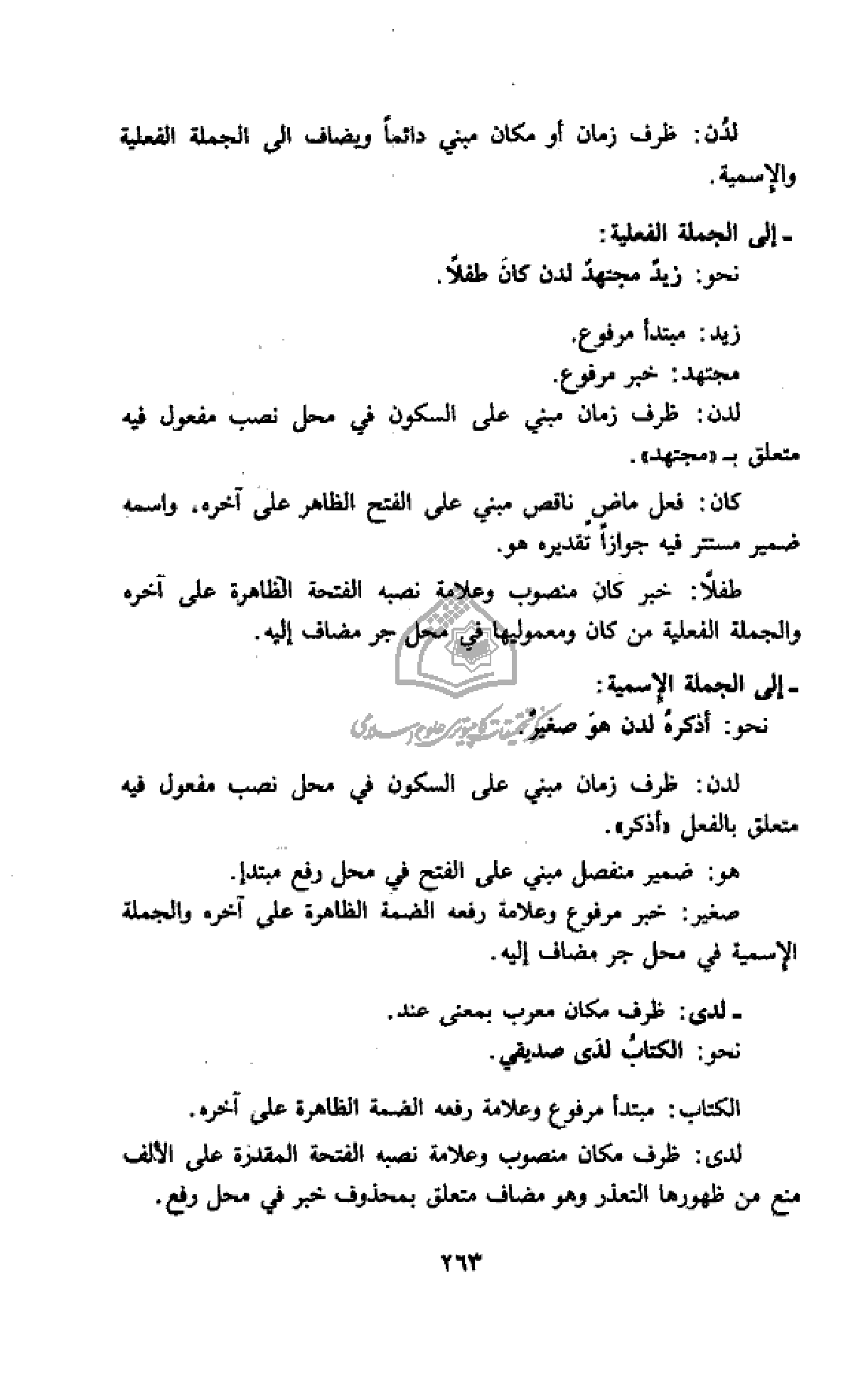 لدن: ظرف زمان أو مكان مبني دائما ويضاف الى الجملة الفعلية والإسمية.