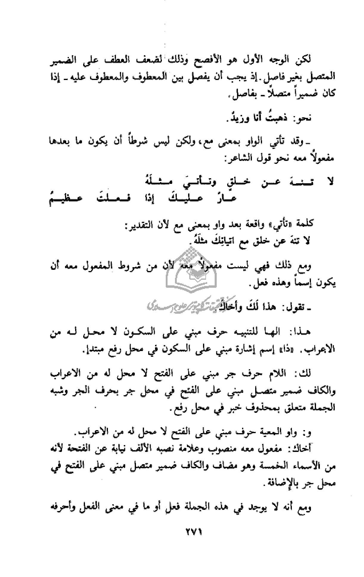 - وقد تأتي الواو بمعنى مع، ولكن ليس شرطا أن يكون ما بعدها مفعولا معه نحو قول الشاعر: