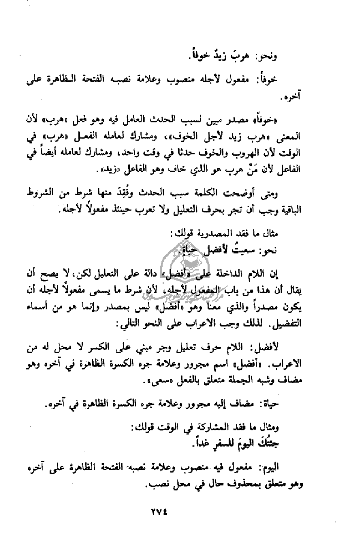 ومتى أوضحت الكلمة سبب الحدث وفقد منها شرط من الشروط الباقية وجب أن تجر بحرف التعليل ولا تعرب حينئذ مفعولا لأجله.