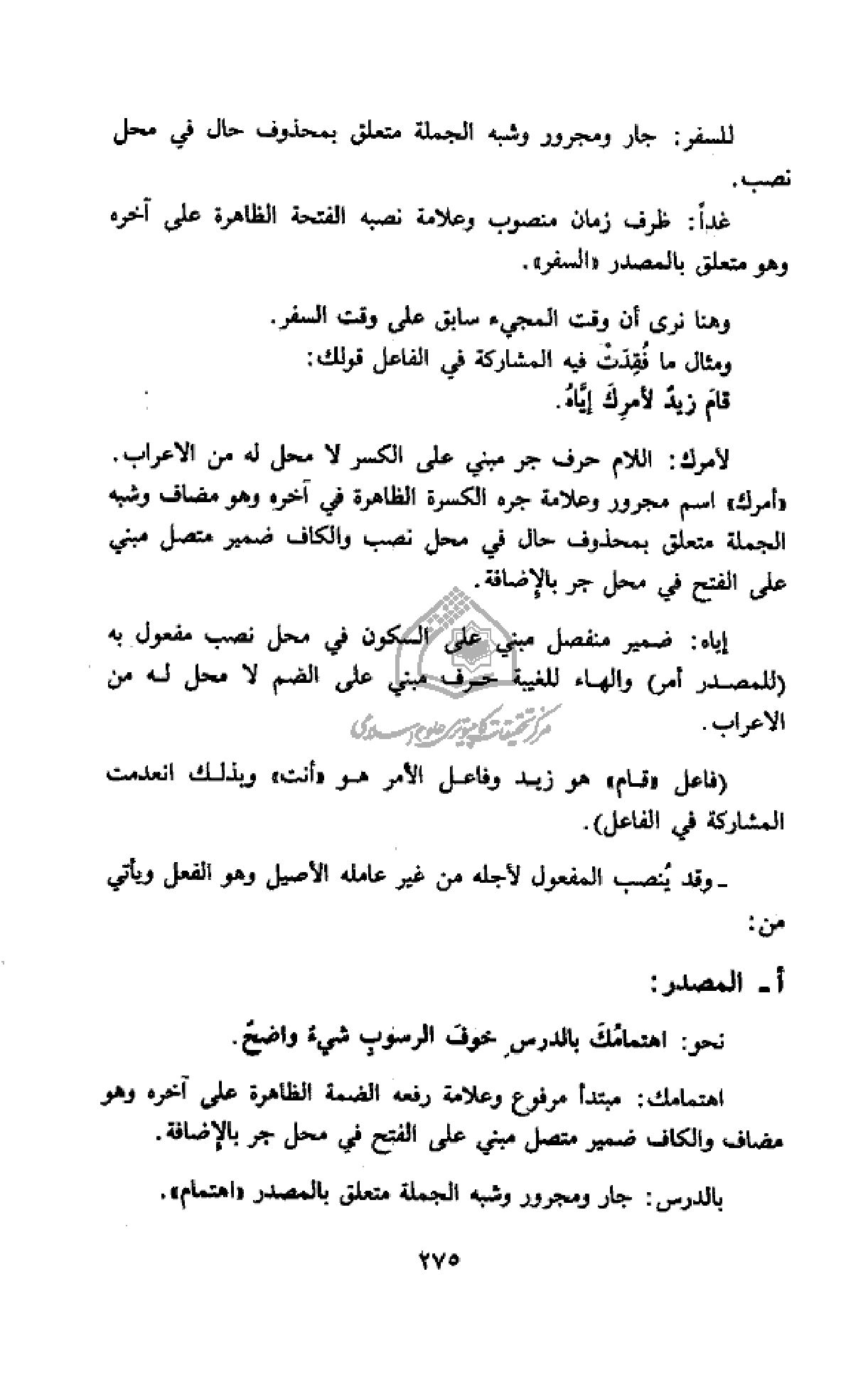 - وقد ينصب المفعول لأجله من غير عامله الأصيل وهو الفعل ويأتي من