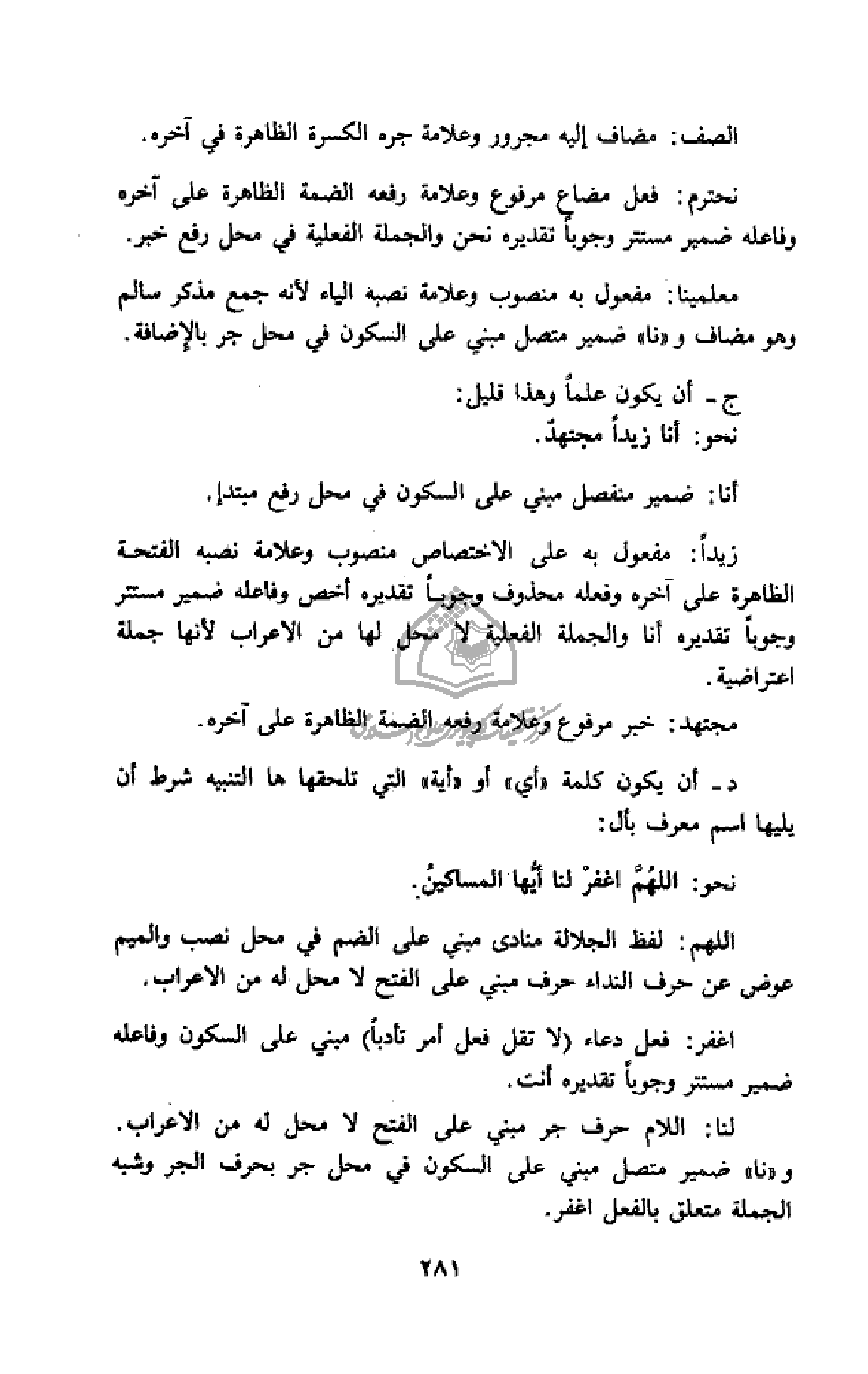 نحو: اللهمّ اغفر لنا أيّها المساكين.
