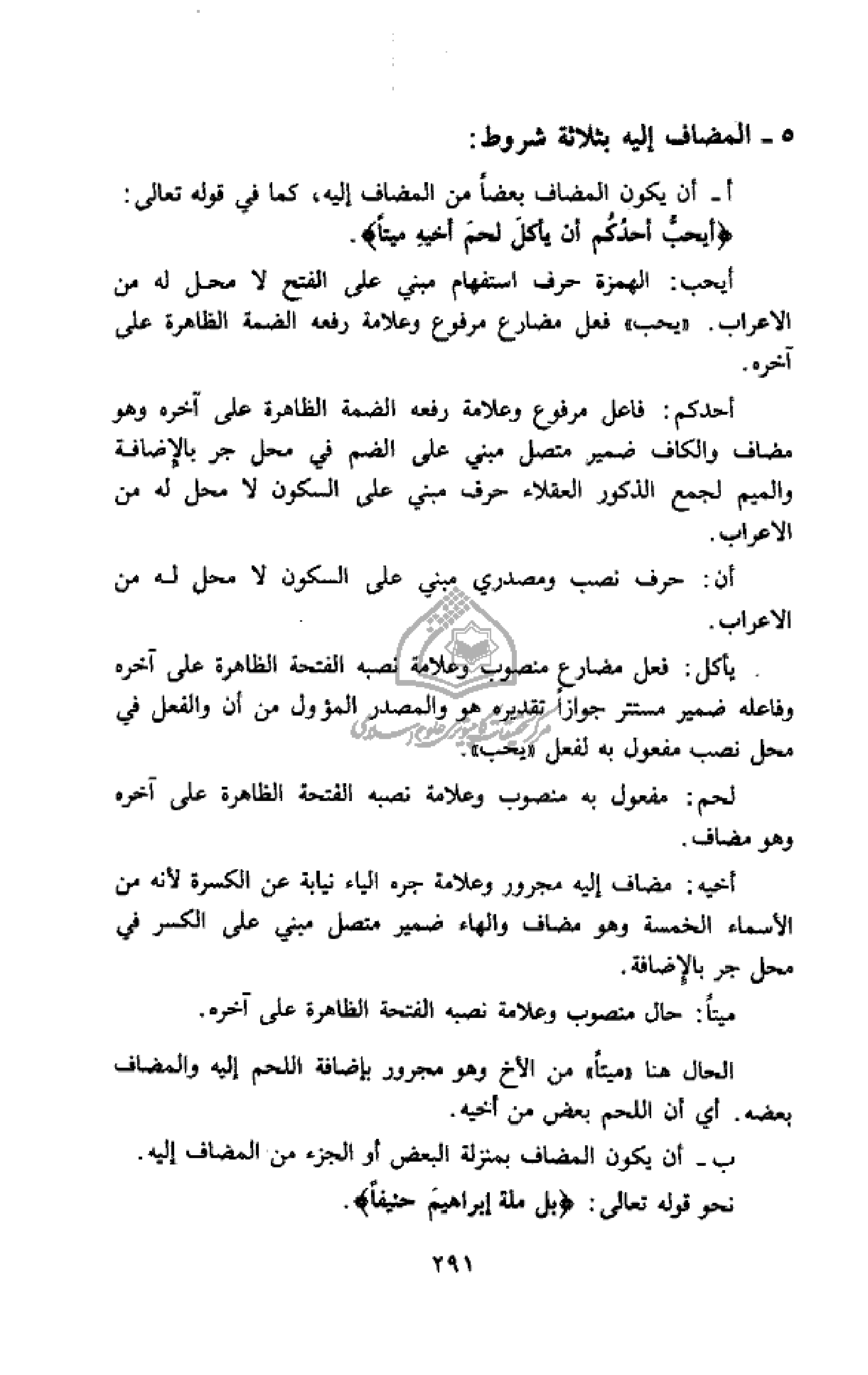 ب- أن يكون المضاف بمنزلة البعض أو الجزء من المضاف إليه.