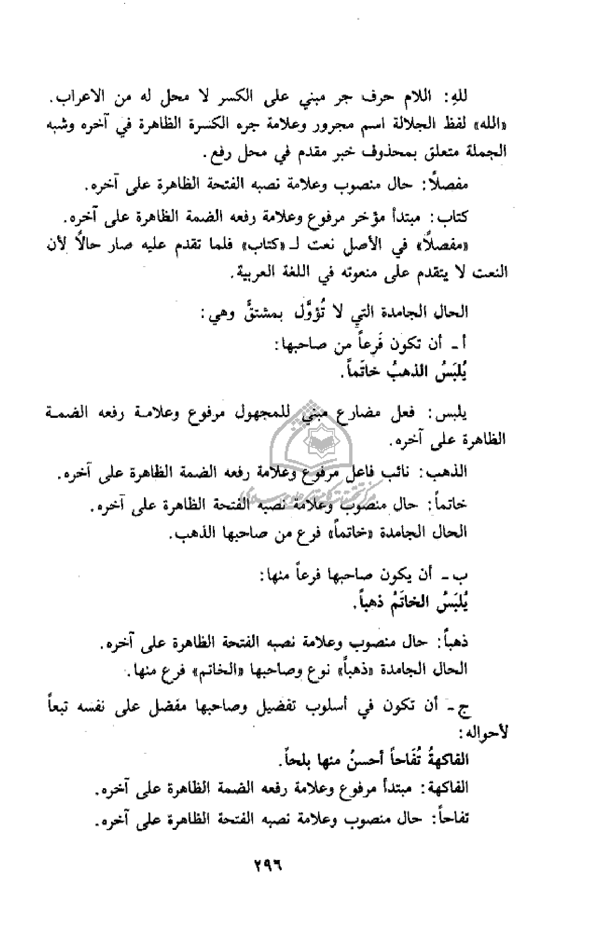 الحال الجامدة «ذهبا» نوع وصاحبها «الخاتم» فرع منها.