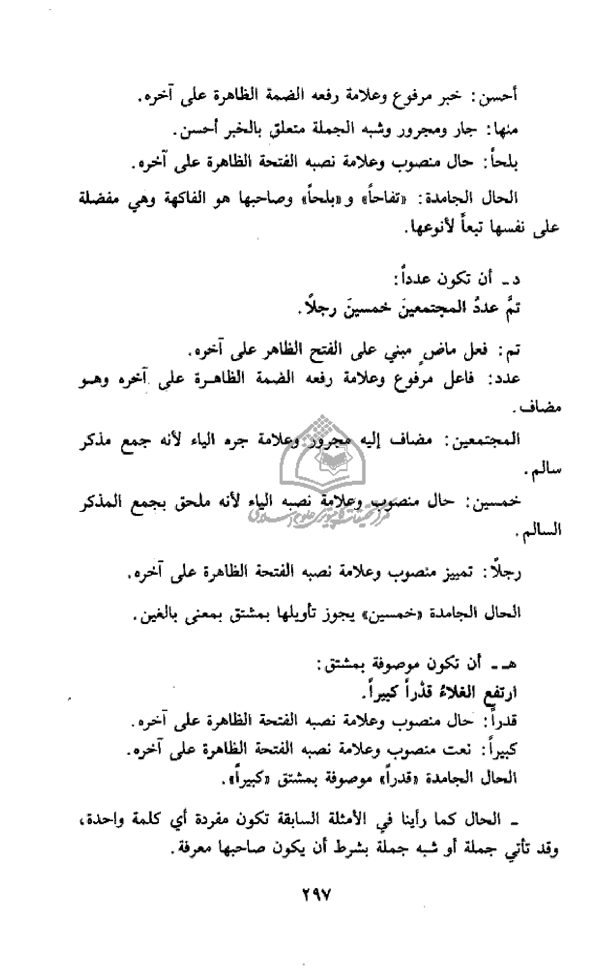 الحال الجامدة «قدرا» موصوفة بمشتق «كبيرا».