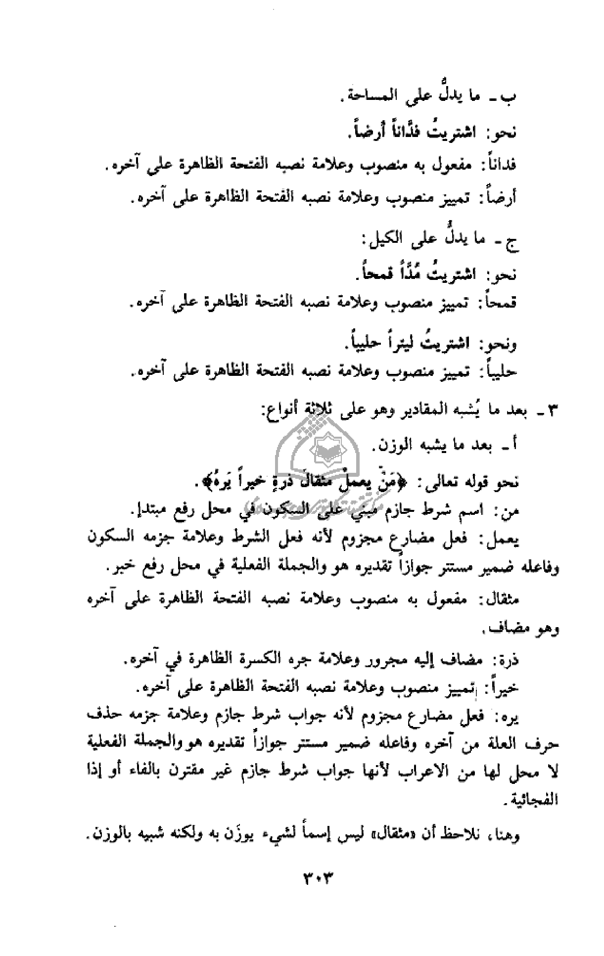 نحو قوله تعالى: فَمَنْ يَعْمَلْ مِثْقالَ ذَرَّةٍ خَيْراً يَرَهُ.