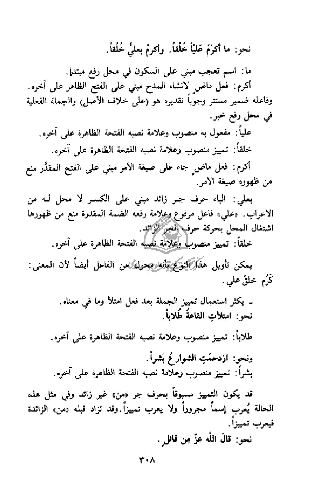 نحو: ما أكرم عليّا خلقا. وأكرم بعليّ خلقا.