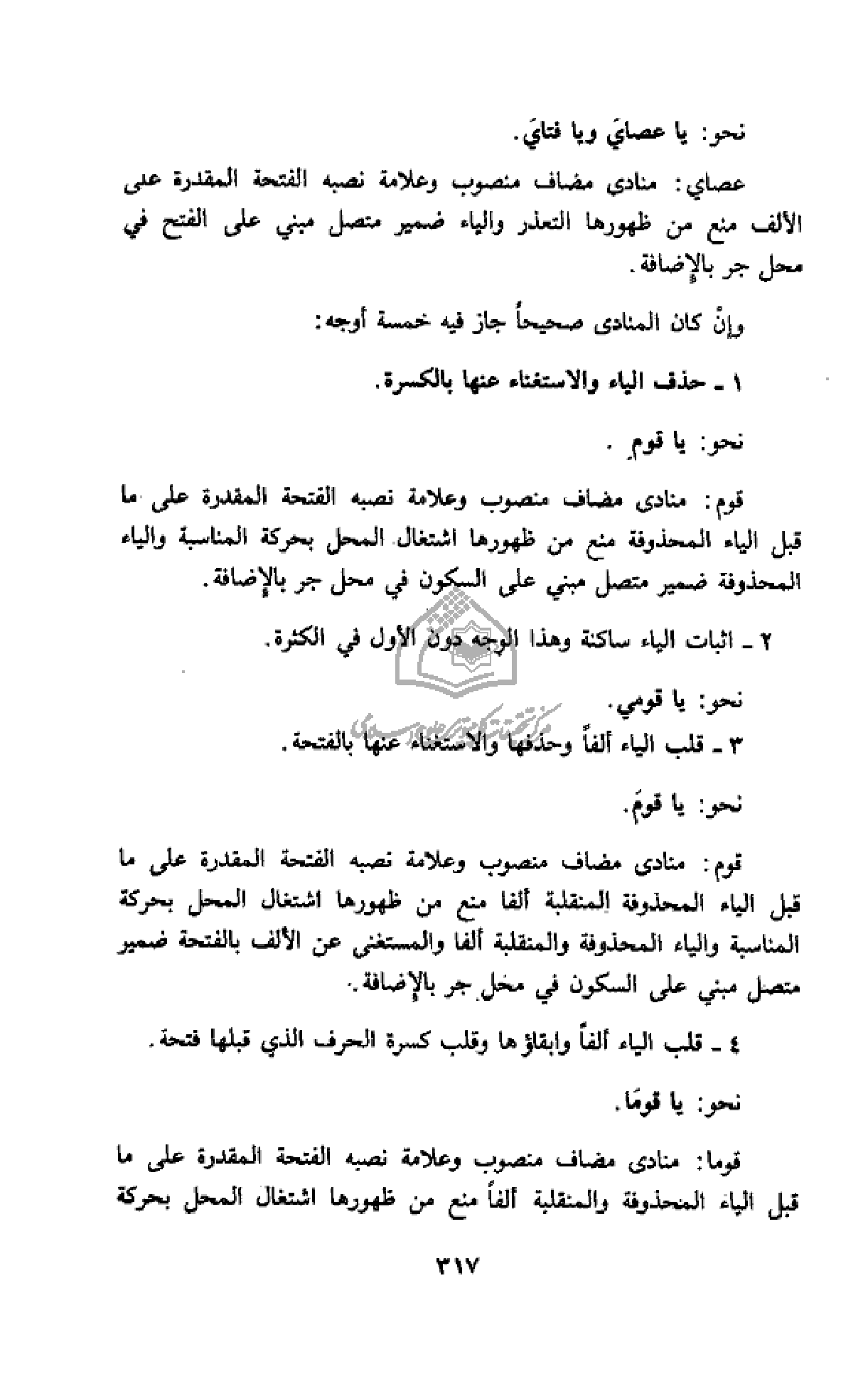 نحو: يا عصاي ويا فتاي.