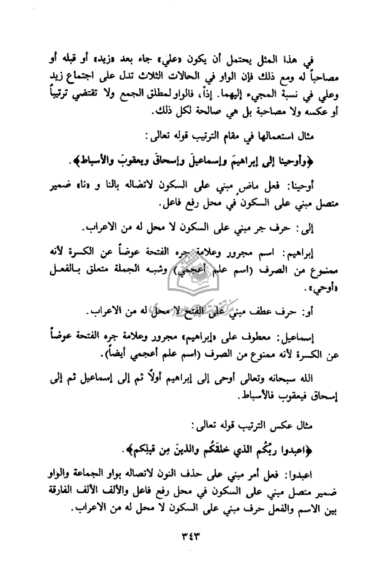 إسماعيل: معطوف على «إبراهيم» مجرور وعلامة جره الفتحة عوضا عن الكسرة لأنه ممنوع من الصرف (اسم علم أعجمي أيضا).