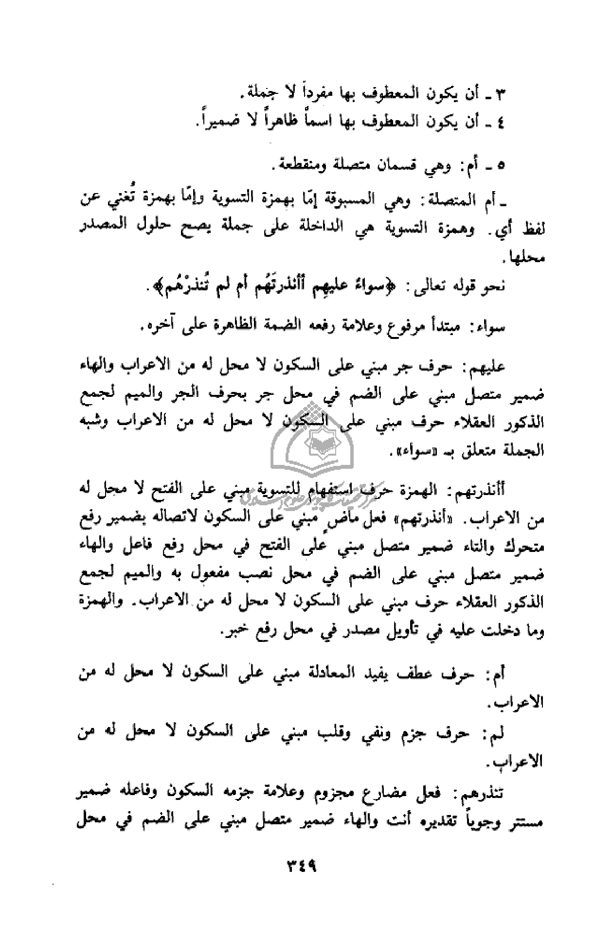 نحو قوله تعالى: سَواءٌ عَلَيْهِمْ أَأَنْذَرْتَهُمْ أَمْ لَمْ تُنْذِرْهُمْ.*