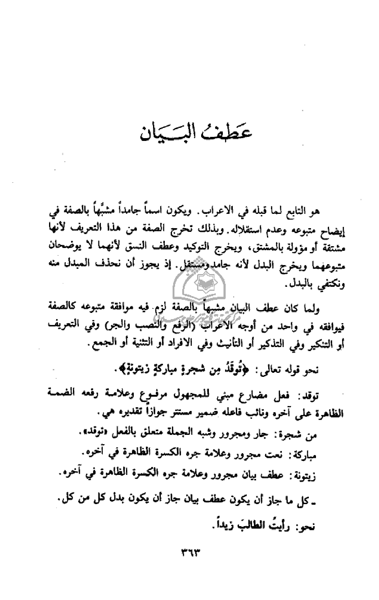 نحو قوله تعالى: يُوقَدُ مِنْ شَجَرَةٍ مُبارَكَةٍ زَيْتُونَةٍ.
