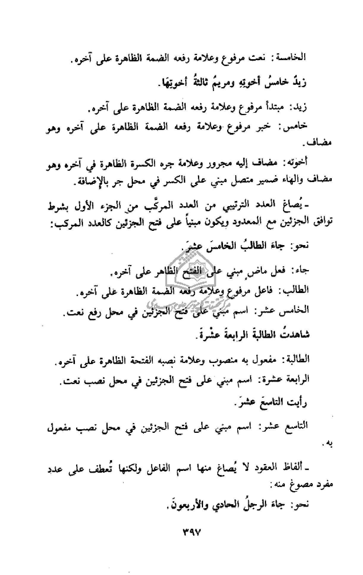 - يصاغ العدد الترتيبي من العدد المركّب من الجزء الأول بشرط توافق الجزئين مع المعدود ويكون مبنيا على فتح الجزئين كالعدد المركب: