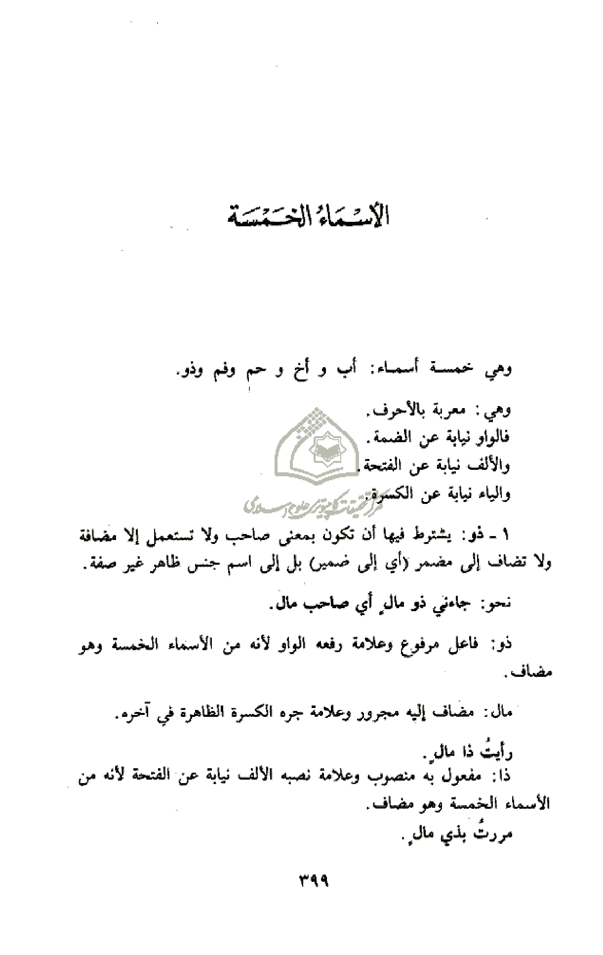 وهي خمسة أسماء: أب وأخ وحم وفم وذو.