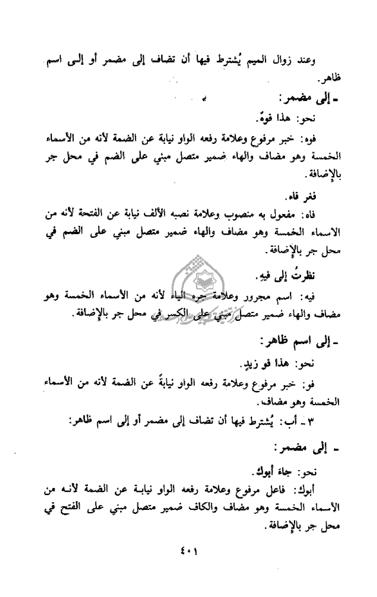 وعند زوال الميم يشترط فيها أن تضاف إلى مضمر أو إلى اسم ظاهر.